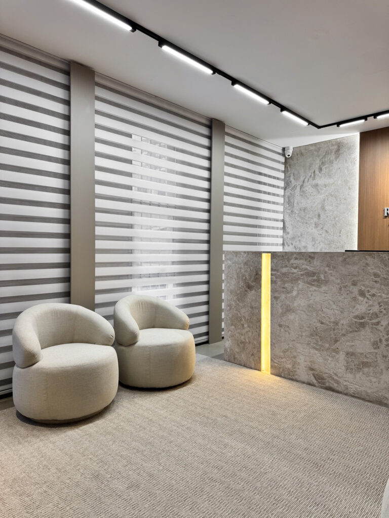 Controle de luz e privacidade com design impecável. Soluções que integram perfeitamente a funcionalidade que você precisa com a estética que você deseja.